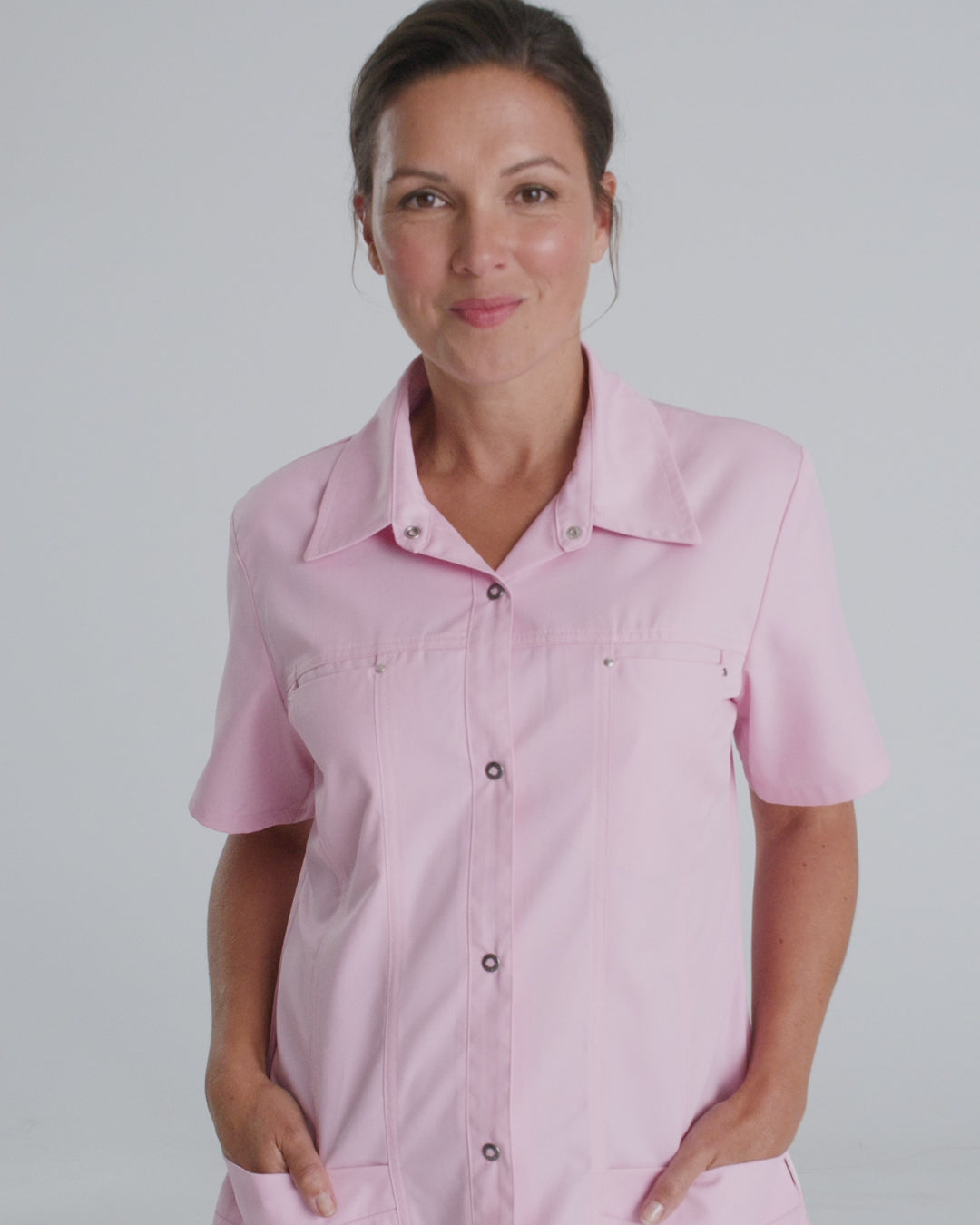 De Kara is een zorgjasje die een ruglengte van 70 cm heeft (bij de maat L). Dit zorgjasje valt over de billen. Mocht u nog een andere kleur wensen dan is er ook nog keuze uit 2 melee kleuren: Kara gekleurd melee.